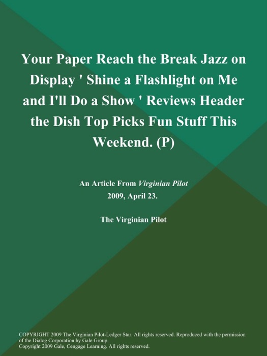 [Download] "Your Paper Reach the Break Jazz on Display ' Shine a Flashlight on Me and I'll Do a Show ' Reviews Header the Dish Top Picks Fun Stuff This Weekend (P)" by The Virginian Pilot ~ Book PDF Kindle ePub Free
